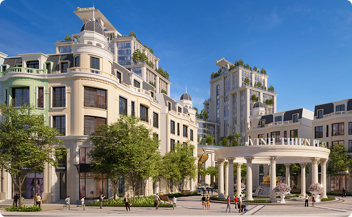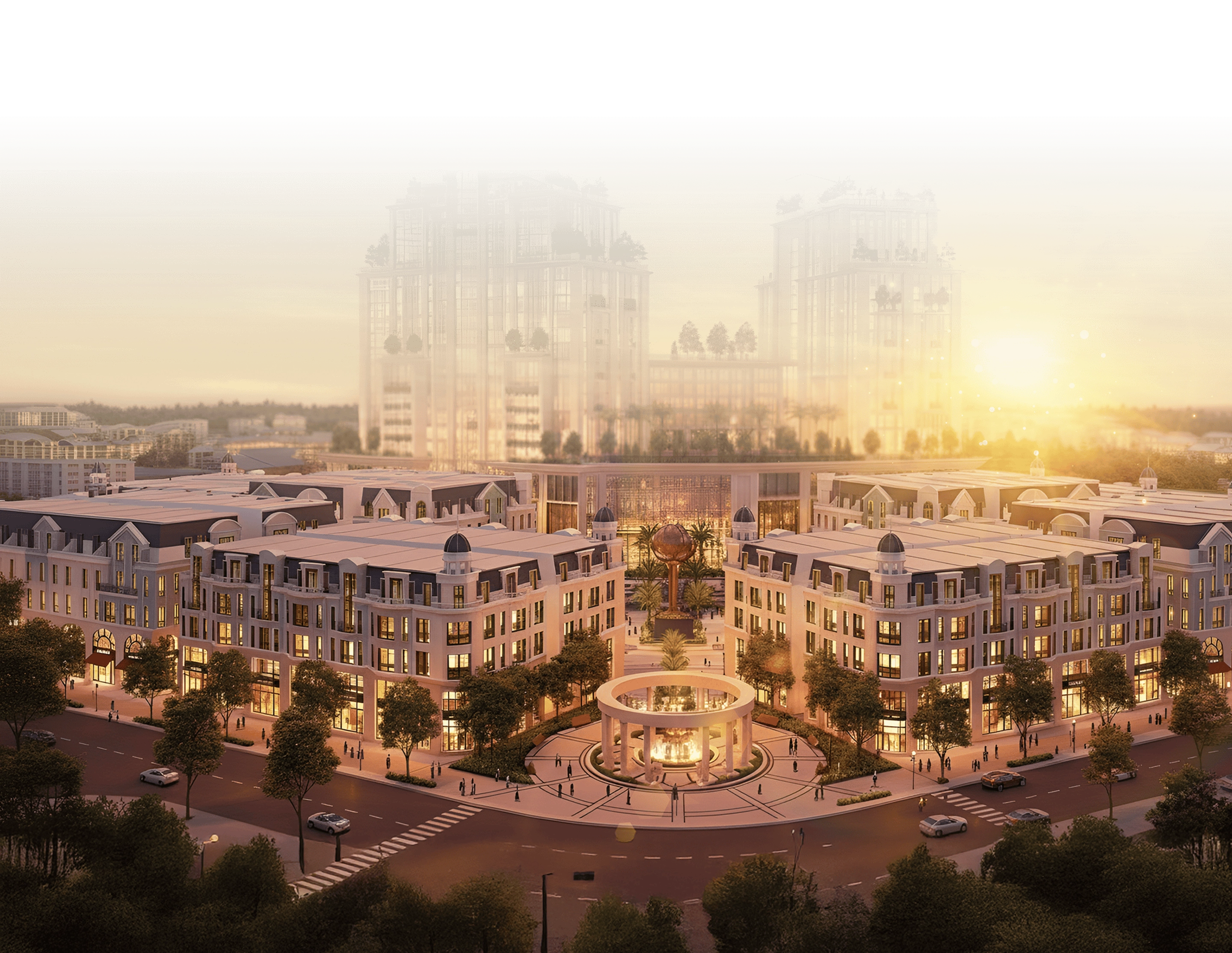 Phong cách kiến trúc kết hợp tinh hoa Anh quốc (Regent Street - London) và Mỹ New Deco hiện đại, mang đến không gian sống và kinh doanh đẳng cấp.